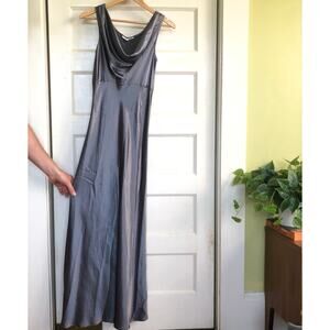 Vintage Bebe Moda Charcoal Silky Cowl Neck Maxi Gown Size 8 Made in USA 90s