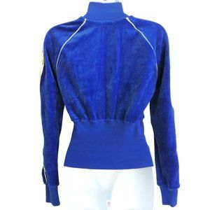 Vintage Bebe Sport Cobalt Velour Track Jacket Full Zip Silver Piping Trim USA S