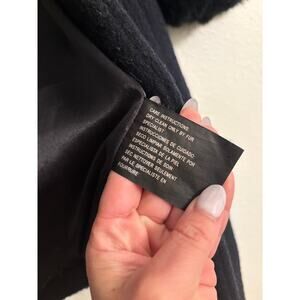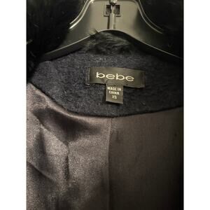Vintage Bebe Two-Tone Monochrome Long Wool Coat with Rabbit Fur Trim | XS