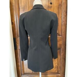 Vintage Bebe Women’s Blazer Jacket in Black size 6. GUC. All measurements in pics above: length 29, chest: 17, shoulder to sleeve: 23,waist: 17, hem: 19, upper arm: 6