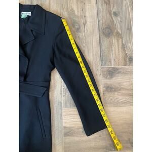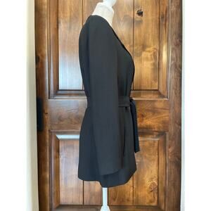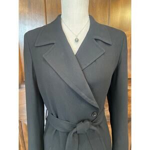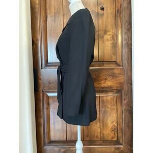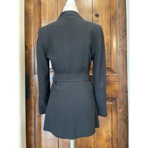 Vintage Bebe Women’s Double Breasted Jacket Black size 4. GUC. Super stylish with a lot of life left. Ties at the waist, with a little shoulder pad. Measurements: Length: 29.5, chest: 17, waist: 15, hem: 19.5, upper arm: 6.5, and shoulder to sleeve: 23.