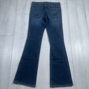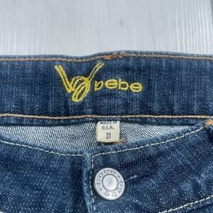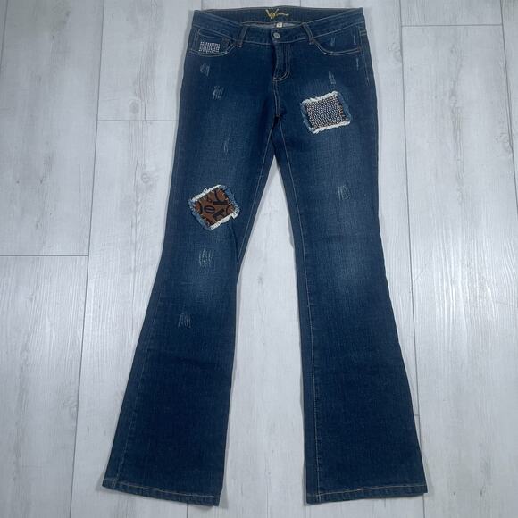 Vintage Bebe Y2k Low Rise Size 31 Flare Jeans Patchwork Dark Wash Distressed