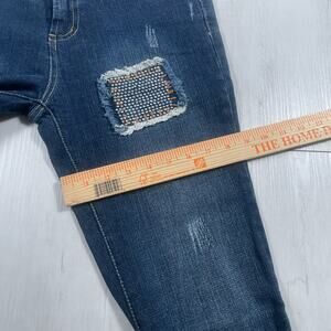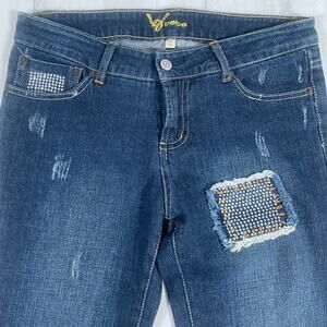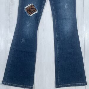 Vintage Bebe Y2k Low Rise Size 31 Flare Jeans Patchwork Rhinestone Distressed