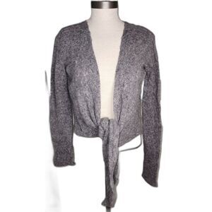 Vintage Bebhinn Marten Grey Cropped Tie Front Irish Wool Blend Cardigan Size M