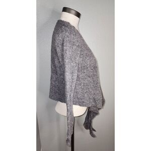 Vintage Bebhinn Marten Grey Cropped Tie Front Sweater Cardigan Size M. Super cute vintage sweater made from super soft wool and polyamide blend, ribbed shoulders and back. Made in Ireland. Great vintage condition with no holes, snags or stains. Open front cropped cardigan that ties in front. Made in Ireland.