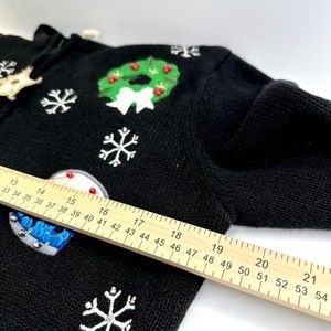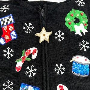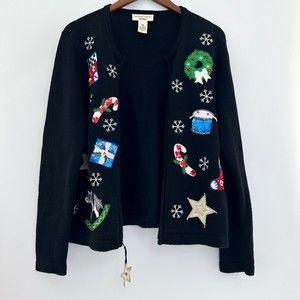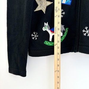 Vintage Bechamel Petites Sequenced Christmas Zippered Sweater Black Size PM