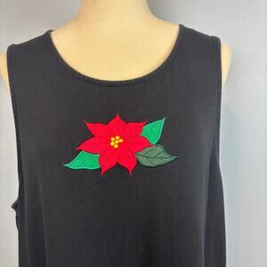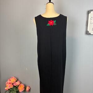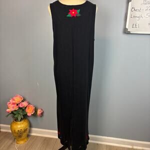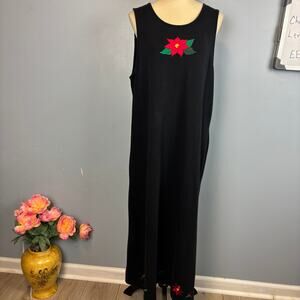 Vintage Bechamel Poinsettia Christmas Thick Jersey Knit Maxi Dress 100 Cotton LG
