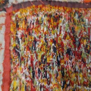 6' + square Jack Loom (best guess) masterpiece, solid integrity. Words cannot describe this magnificent piece. It is exceptionally well-preserved with very few minuscule imperfections. The entire perimeter is edged with individual squares of hand embroidered unique and creative design. In the center is a fine flat black silk upon which the rest of the piece emerges. This was passed down by a woman born in the 1800's so the strength and integrity of this piece is astounding.