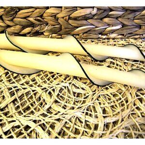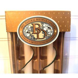Vintage Beeswax Designs Taper Candles, 12" Tapers, Handmade, 100% Natural, GUC. **These candles are unfurling a little bit at the tips and are slightly bent from being in the package; PLEASE SEE PICTURES** These are new candles that have never been lit.