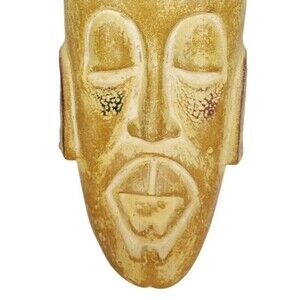 Vintage Beige Clay African Tree Mask Hanging Tribal Mask Face Heavy