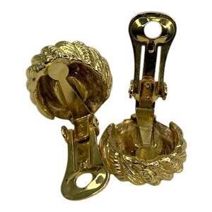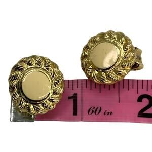 Vintage Beige Enamel Clip On Gold Tone Earrings
