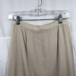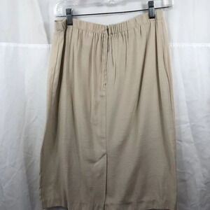 Vintage Beige Midi Skirt Size 10 Rayon Blend Elastic Waist Workwear Minimalist N