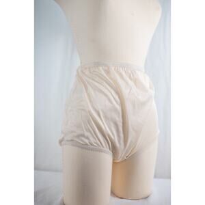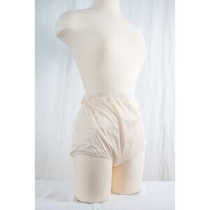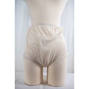 Vintage Beige Nylon Panties High Waisted Granny Briefs Silky Retro Lingerie 42 L
