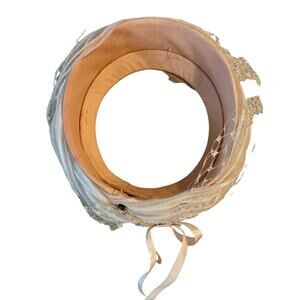 Vintage Beige Pillbox Fascinator Wedding Event Hat Lace Ribbon Trim 50's - 60's