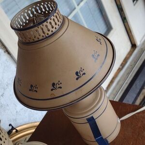 Charming vintage table lamps in beige with delicate floral accents. Perfect for adding a touch of elegance to any room.Larger lamp needs a glass chimney (8")& can be ordered online.Tested
