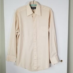 Vintage Beige Tan Work Shirt, Button Up Dress Shirt, thin Men 16-33