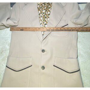 Vintage Beige Textured Mens Blazer 70's Geometric Lining & Dark Trim Retro Disco