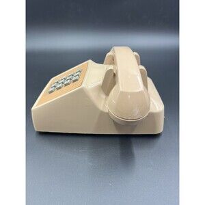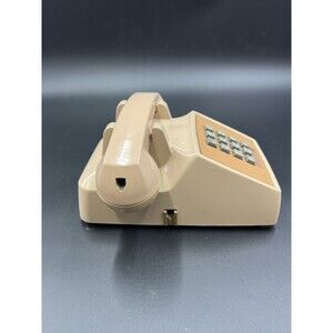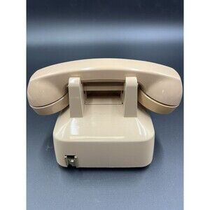 Vintage beige Western Electric 2500DM desk phone manufactured in October of 1983. It is missing the handset cord. The phone has not been tested.