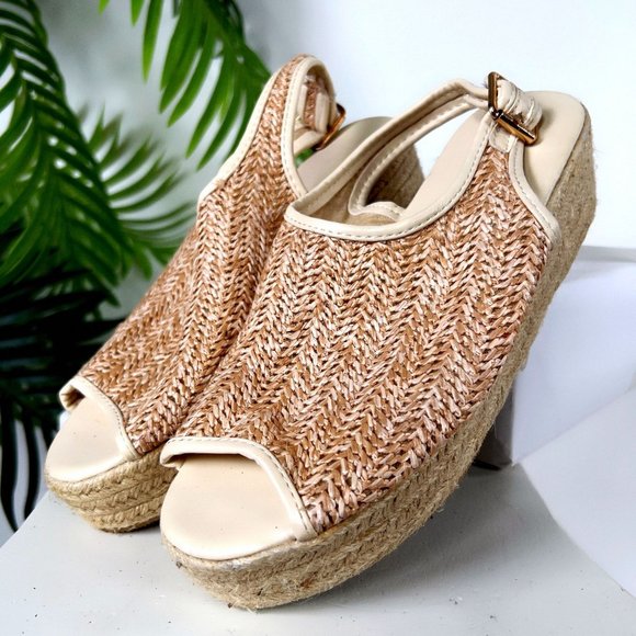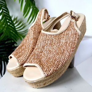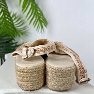 Vintage Beige Woven Boho Beachy Open Toe Chunky Platform Sandals / Size: 7