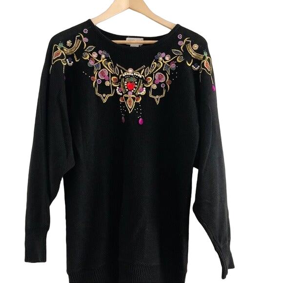 Vintage Bejeweled Sweater Grannycore Medium