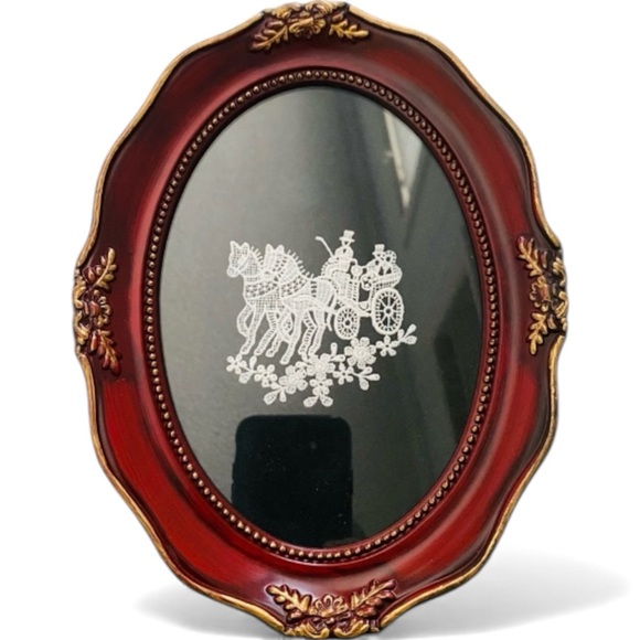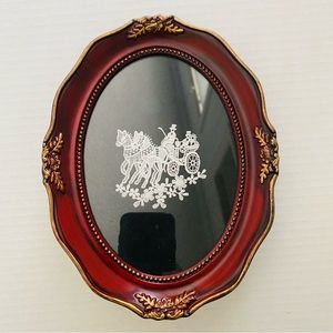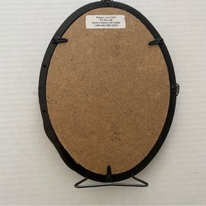 Ornate oval frame with gold tone guild measures approximately 8.5x 6.5”.