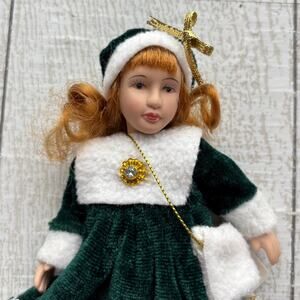 Christmas, Vintage, Collectible, Doll, Red, Green, Porcelain, Holiday, Redhead, Keepsake, Heirloom, Gift, Decor, Classic, Green, Dress, Display, Timeless, Elegant