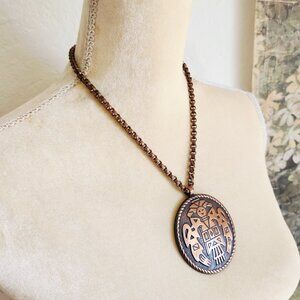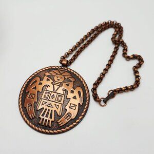 Vintage Bell Trading Co. Aztec Warrior 50's Copper Pendant Southwestern Necklace