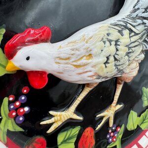 Vintage Bella Casa by Ganz Hand Painted Hen Chicken 3D Wall Plate Decor black wh