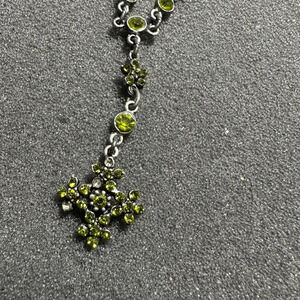 Vintage Bellagio Green Crystal Dark Silver Tone Necklace Made in USA Flawed missing 3 crystals on the cross see pictures for reference