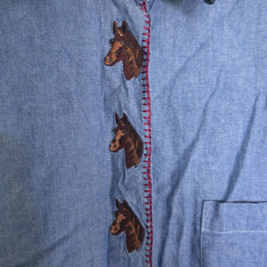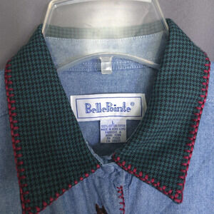 Vintage BellePointe Denim Button Down Top Size Large Houndstooth Horse