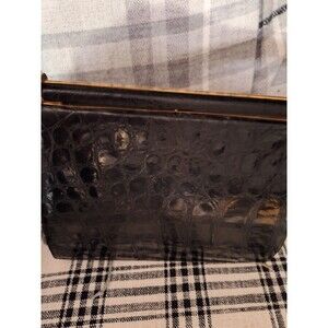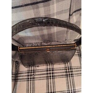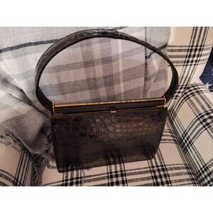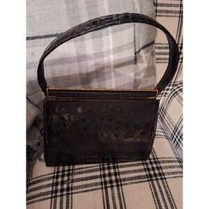 Vintage Bellestone Black Alligator 1950's Style Handbag Purse - Brass Hardware
