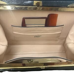 Vintage Bellestone Black Lizard Alligator Cutch Handbag 1950s