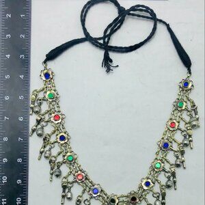 Vintage Bells Tribal Afghan Bib Necklace Silver Kuchi Bib Necklace With Bells