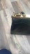 This purse is a vintage-style handbag made by Bellucci, with a black faux-crocodile pattern, a gold-tone metal frame, and a structured handle.
