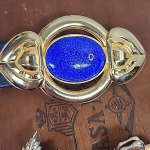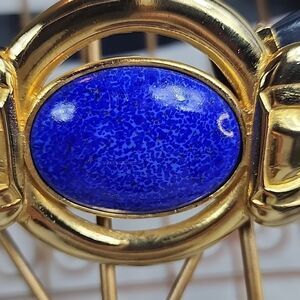 4 1/2" x 2 1/4" lapis lazuli style cabochon and gold tone clasp with fastener,