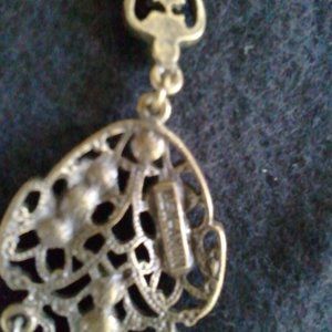 Vintage Chandelier Earrings by Ben Amun. Pink rhinestones and crystals on an aged looking brown metal. Retro style.