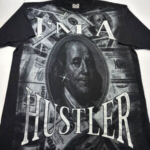 Vintage Ben Franklin Money Shirt Im A Hustler Size XXL Black Gangsta Bootleg