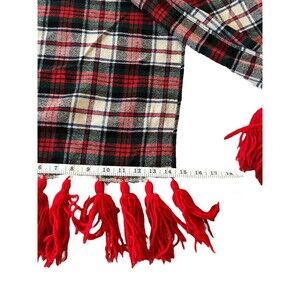 Add a classic touch to your wardrobe with this vintage Ben Goodman and Sons Inc wool scarf. The plaid pattern in red is perfect for any outfit, while the tasseled accents add a playful element. Made from 55% wool, this scarf is warm and cozy, making it suitable for all weather conditions. Whether you're dressing up or down, this unisex scarf is sure to make a statement. Perfect for any occasion, this scarf would make a great addition to any collection.
