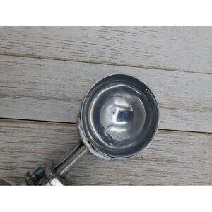 Vintage Benedict Indestructo ice cream scoop with a durable wood handle. Perfect for collectors or vintage kitchen enthusiasts, this size 24 scoop is a charming addition to any kitchen.