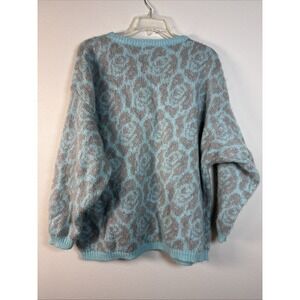 Vintage Benetton Mohair Blend Sweater Made in Italy Aqua Gray Rose Floral 80 90