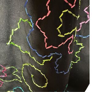 Vintage Bentley Arbuckle Black Embroidered Floral A-Line Skirt Size 6 . This pre-owned black skirt is in good condition, featuring vibrant and eye-catching embroidered floral designs in shades of pink, blue, and green. "Made in USA" from imported fabric, as indicated on the care label. It's perfect for adding a unique vintage touch to both casual and more dressed-up ensembles.