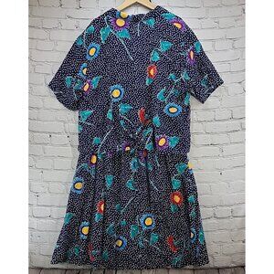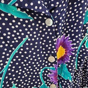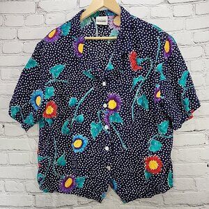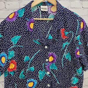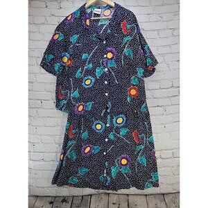 Vintage Bentley Woman Skirt Set Sz XL Blue Floral Modest Shoulder Pads Pockets