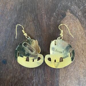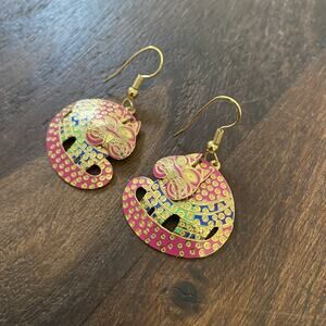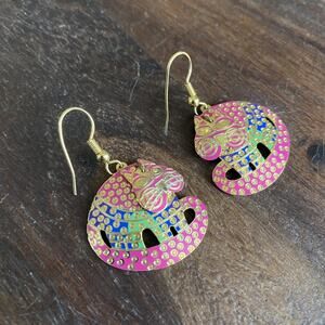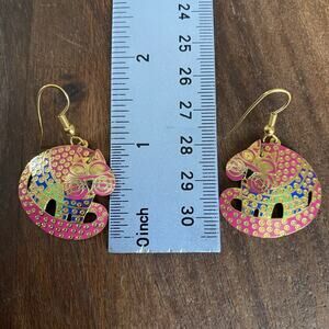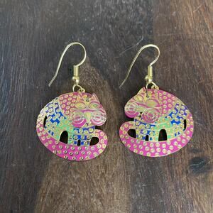 Vintage Berebi Articulated Cat Dangle Earrings Gold Tone Pink Blue