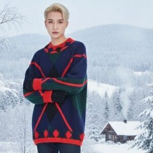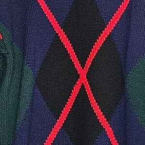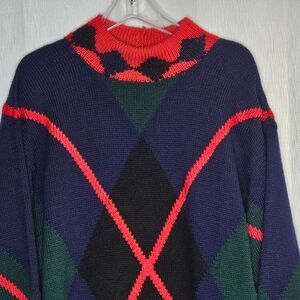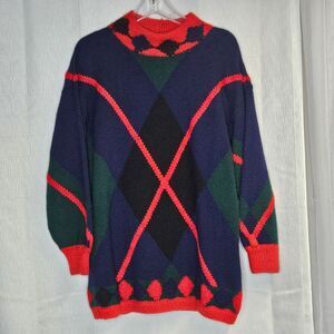 Vintage Berek 1987 Argyle Diamond Wool Long Sleeve High Neck Long Tunic Sweater