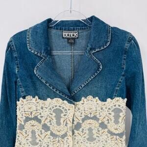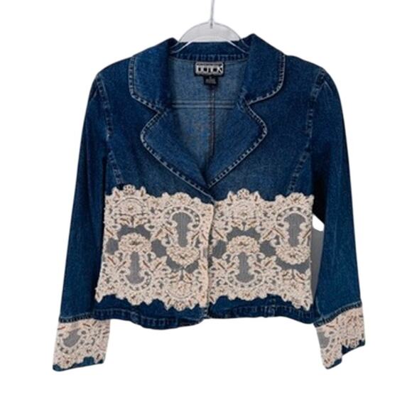 Vintage Berek 2 Takako Sakon Jean Jacket Womens Small Blue Lace Bead Trim Cotton