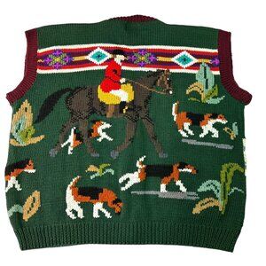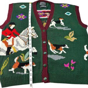 Vintage Berek Hand-Knit by Marta D Equestrian Sweater Vest Cardigan Size Large