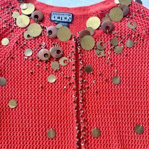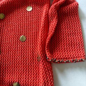 Vintage Berek Orange Sweater Womens M Cardigan Dangle Decorative Embellish Gypsy