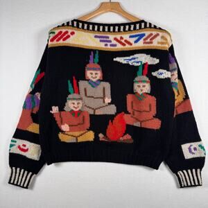 Vintage 1988 Berek Marta Thanksgiving Harvest Native American Indians TeePee Hand Knitted Sweater Medium