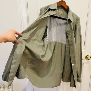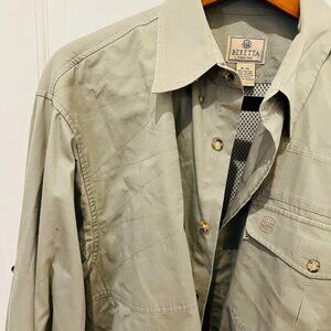 Vintage Beretta Sport Shooting Hunting Safari Button Down Khaki Tan Shirt Men's
