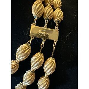 Vintage Bergere Beaded Three Strand Twisted Bead Necklace Goldtone 18 In